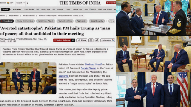 بھارتی خبر رساں ادارہ ٹائمز آف انڈیا نے اپنی رپورٹ میں لکھا ہے کہ پاکستان کے وزیرِاعظم شہباز شریف نے جمعے کے روز امریکی صدر ڈونلڈ ٹرمپ کو ’’امن کا علمبردار‘‘ قرار دیتے ہوئے ان کا شکریہ ادا کیا کہ انہوں نے پاکستان اور بھارت کے درمیان جنگ بندی میں سہولت فراہم کی۔شہباز شریف نے کہا کہ ٹرمپ کے ’’دلیرانہ، جرات مندانہ اور فیصلہ کن‘‘ اقدامات نے جنوبی ایشیا میں ایک ’’بڑے سانحے‘‘ کو ٹال دیا۔